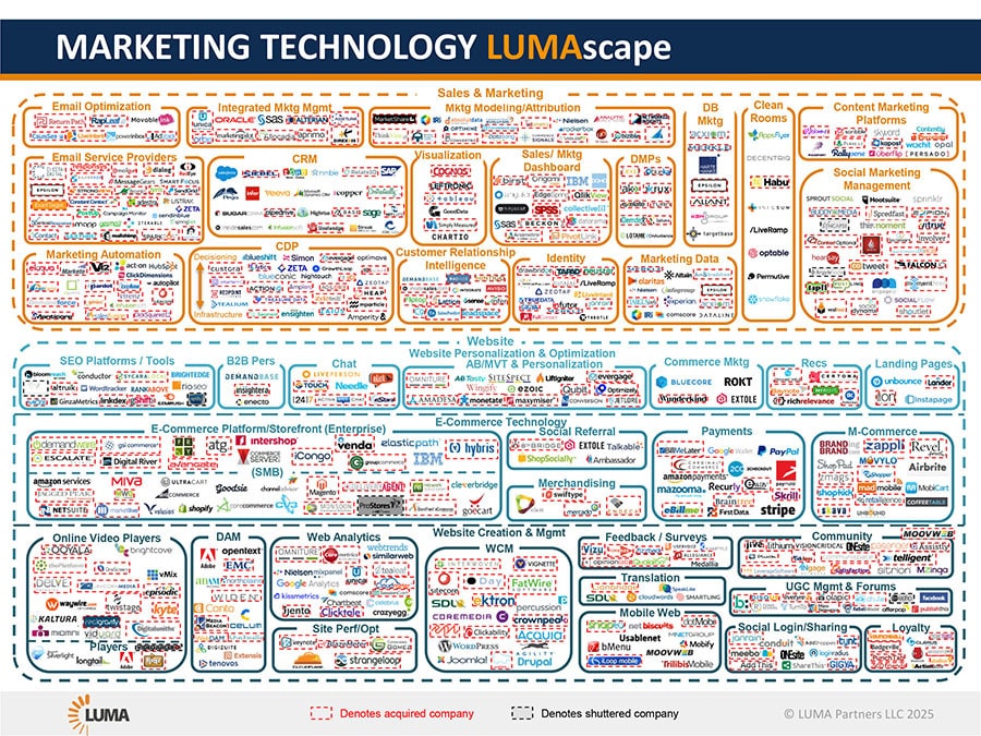With the proliferation of marketing tools, I am reminded of what Harvard Professor Theodore Levitt’s wrote way back in 1960: “People don’t want to buy a quarter-inch drill; they want a quarter-inch hole.” Many years later, one of my business school professors said it a different way, “If you could make a hole with your finger, would you ever buy a drill?” He was trying to get us to focus on solutions not tools. One look at the chart below shows how in today’s digital world, that message seems to be lost.